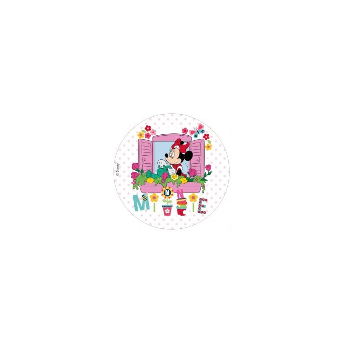 Il s'agit d'un disque au chocolat, d'un diamètre de 11 cm. Ce disque est illustré par Minnie en train d'arroser ses plantes dans des couleurs très vives ! Votre fille sera enchantée devant ce disque à gâteau comestible !