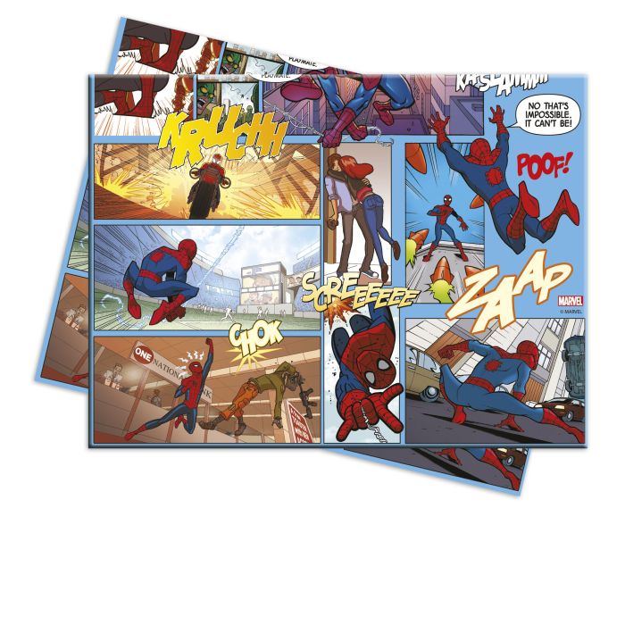 Si vous recherchez de la décoration pour anniversaire sur le thème de Spiderman, vous êtes exactement au bon endroit. Pour la décoration de table, nous vous proposons ici une nappe Spiderman. Cette nappe Spiderman mesure 120x180cm. Votre enfant va adorer cette nappe Spiderman hyper originale décorée sous la forme d’une BD : des cases de BD avec Spiderman volant d’une case à l’autre. Cette nappe va amener de la couleur et du peps à votre décoration d’anniversaire.