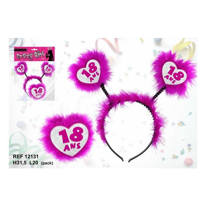 Serre-tête « Crazy Girl » ornée de deux petits pompons « 18 ans » !