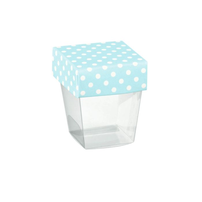 10 Boîtes à dragées bleues à pois - 3,3 cm x 3,3 cm x 5 cm - Vendu sans dragées et sans décoration (ruban, étiquette...)