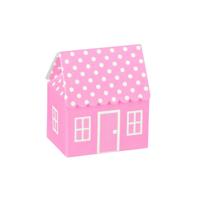 10 Boîtes à dragées maison rose à pois blancs - 6 x 4 x 7 cm, vendues sans dragées et sans décoration (ruban, étiquette...).