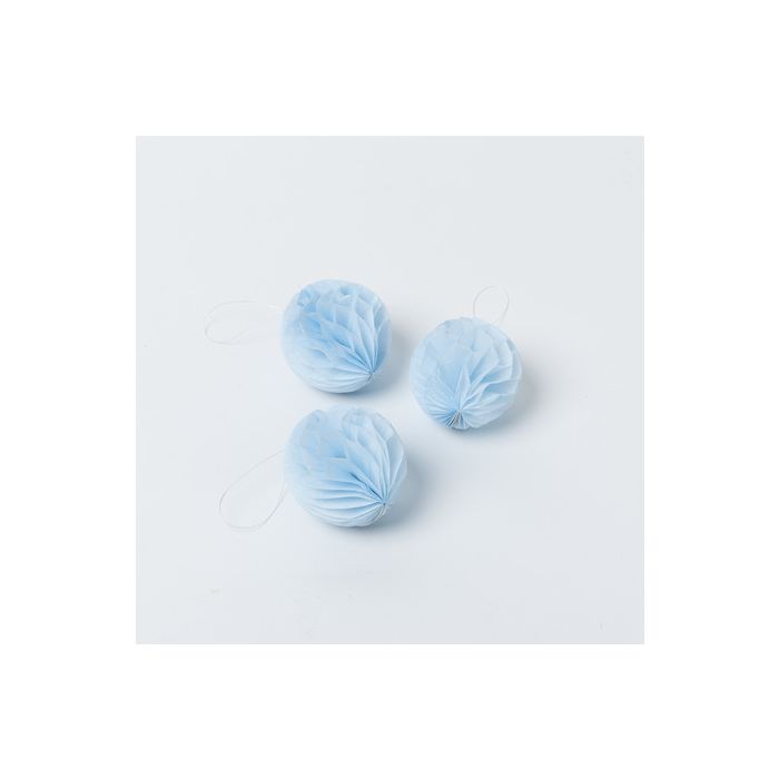 Il s'agit d'un lot de 10 boules alvéolées, en papier, mesurant chacune 6 cm. Ces boules alvéolées sont déclinées en différentes couleurs au choix : blanc, gris, rose et bleu ciel. A mixer avec des suspensions de différentes tailles et formes, des pompons de plusieurs couleurs et des lampions, ces boules alvéolées apporteront une touche délicate et aérienne à votre décoration de fête.