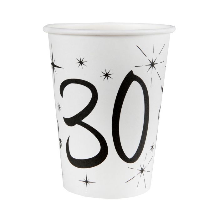 10 gobelets 30 ans en carton de 10 cm de haut.