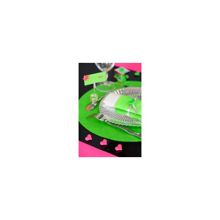 En forme de cœur et de 2 centimètres par 2 environ, ces perles fluo se marieront merveilleusement bien avec une déco salle verts : nappe verte, guirlande verte, housses de chaises vertes, chemins de table vert…