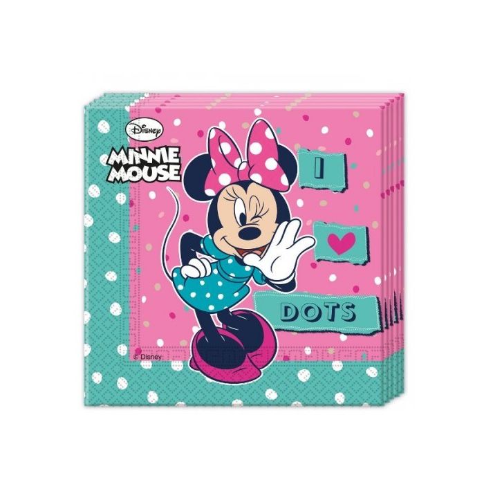 A cette occasion, nous vous proposons un lot de 20 serviettes Minnie. Il s'agit de serviettes en papier de taille 33 x 33 cm. Elles sont illustrées de Minnie habillée d'une robe à pois.