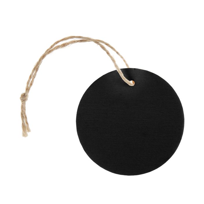 Il s'agit d'un lot de 4 marque-places ronds couleur ardoise, en bois et cordon. Ces marque-places mesurent 5,5 cm de diamètre, le cordon en mesure 16 cm. La partie en bois vous permettra d'écrire le nom de vos invités pour qu'ils s'installent au bon endroit.