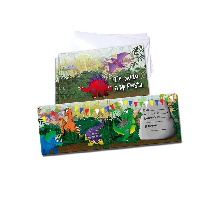 6 Cartes d'invitation dinosaures en carton écrites en espagnol.