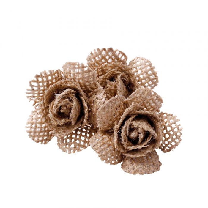 Nous vous proposons, ici, un ensemble de 6 roses en jute, couleur marron sur tige.