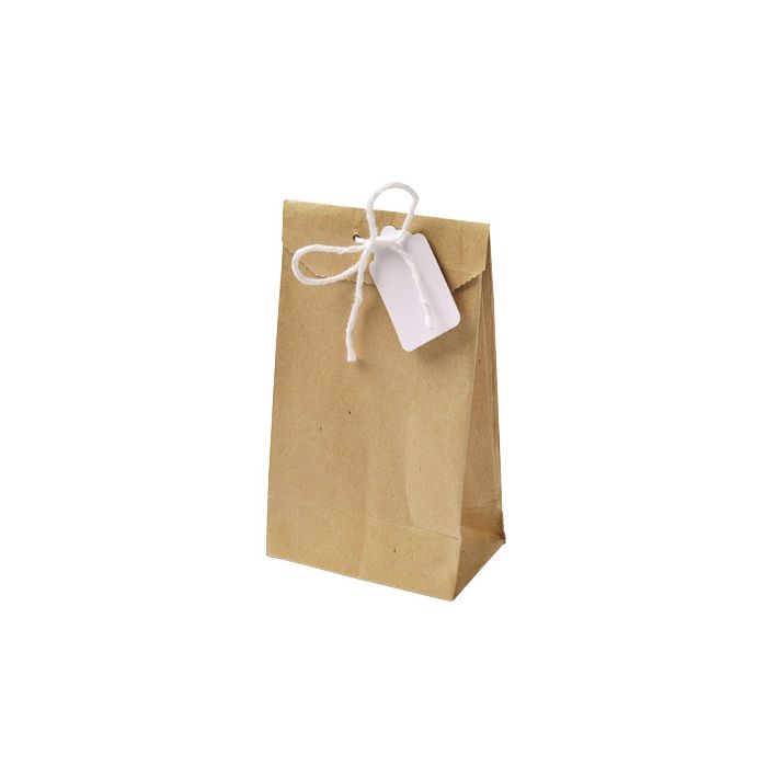 6 sachets kraft uni avec lien et étiquette - 7.5 x 12.5 x 4.5 cm