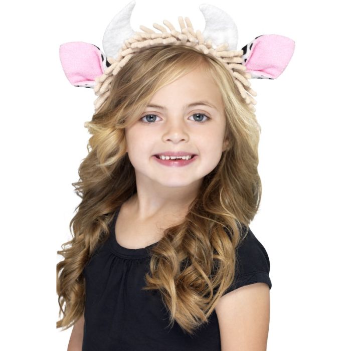 Seerre-tête avec oreilles de vache pour un déguisement de vache.