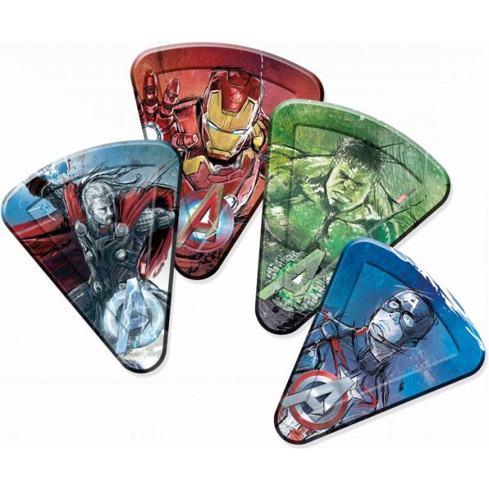 Les enfants invités seront en admiration devant cette décoration de table spéciale Avengers avec ce lot de 8 assiettes à l’effigie de leurs héros préférés : Iron Man avec sa tenue de combat rouge et jaune, Thor prêt à attaquer avec son armure noire et sa cape rouge, Hulk et sa surprenante couleur de peau verte et Captain America vêtu de sa combinaison bleue, blanche et rouge !