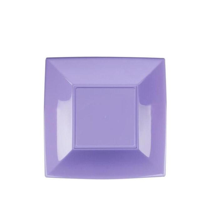 Craquez pour ces 8 assiettes plates carrées parme, en matière plastique de dimensions 23x23 cm.