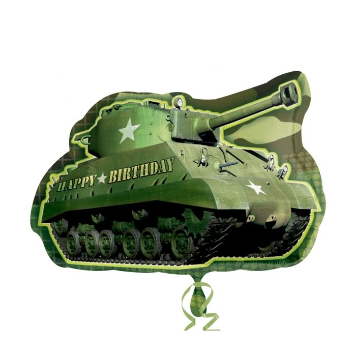 Découvrez ce magnifique ballon hélium en forme de tank militaire floqué "Happy Birthday". On le sait bien, les petits garçons sont très friands des jeux de guerre en passant des journées entières à s'amuser avec les copains. Vous avez la un accessoire très original qui viendra décorer de manière unique la fête d'anniversaire de votre enfant. Idéal pour agrémenter un thème de fête sur le camouflage ! Vous pourrez exposer ce ballon hélium que ce soit en intérieur dans votre salle de fête ou bien en extérieur dans le jardin. Utilisez du bolduc pour fixer votre ballon à un poids et laissez le flotter avec élégance. Soyez-sûr de faire plaisir à votre enfant et lui offrir un anniversaire unique.