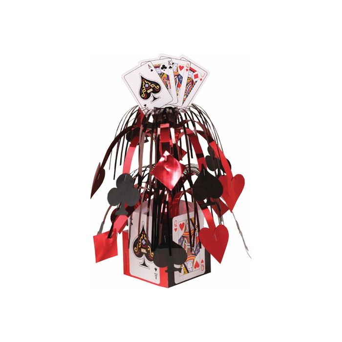 Centre de table jeu de cartes, en papier, de 51 x 12 cm, rouge, blanc et noir. Une déco top design pour les réceptions thème casino !