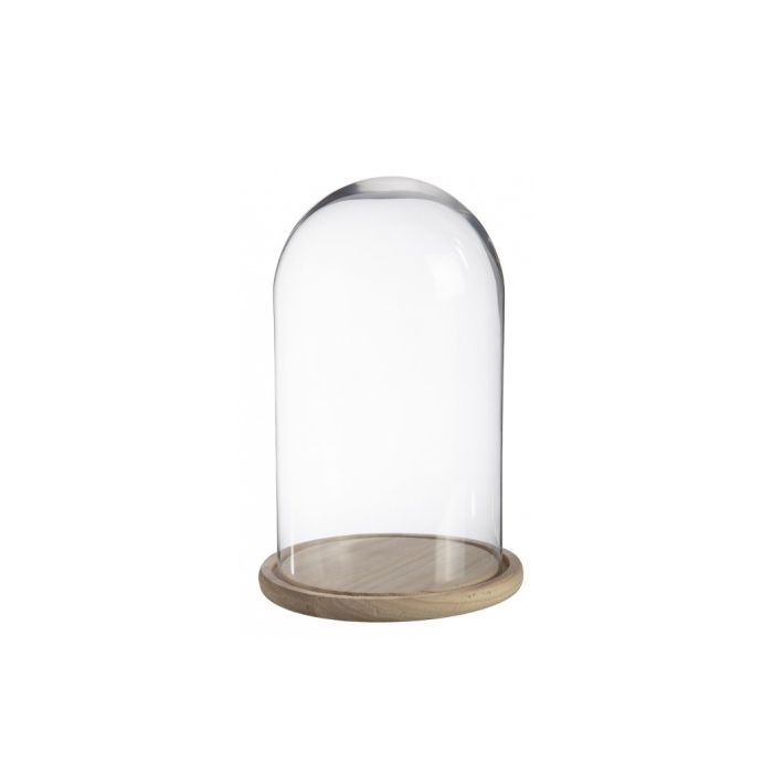 Cloche en verre et socle bois 22.5 cm x 17 cm