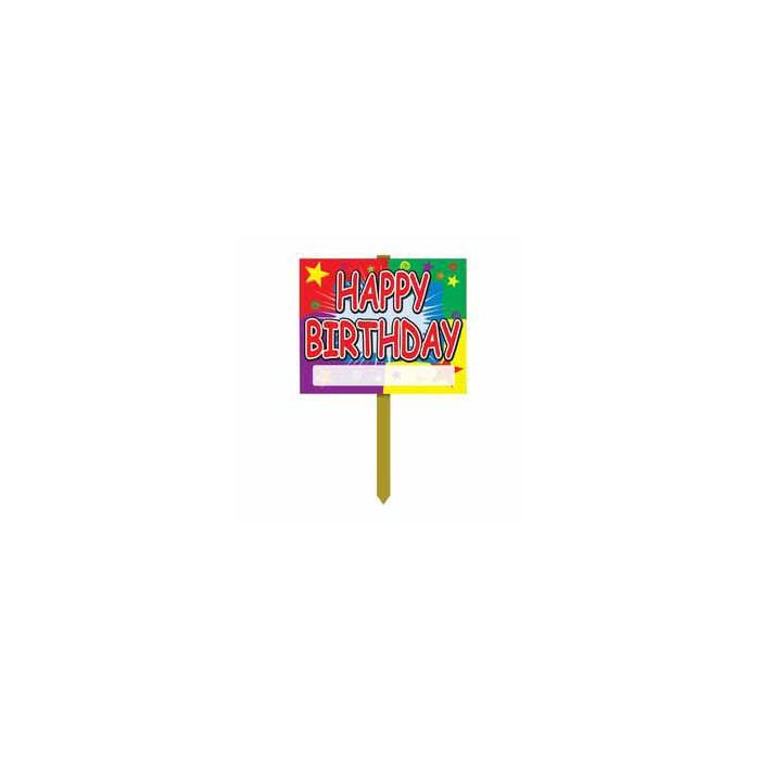 Ecriteau à fixer avec écrit dessus "Happy Birthday". Cette pancarte mesure 30 x 38 cm