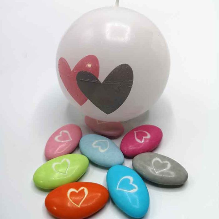 Ces dragées au chocolat motif cœurs, vendus par sachets de 250 grammes, surprendront sans aucun doute vos invités et resteront le symbole de cet évènement que vous avez organisé en l’honneur de votre enfant ou de votre mariage. Vous pouvez choisir de commander ces dragées en vert, bleu marine, bleu turquoise, gris, orange ou encore fuchsia ou bien de commander plusieurs sachets pour mélanger les couleurs. N’hésitez pas à vous faire plaisir, ces dragées imprimées d’un cœur seront parfaites pour la célébration de l’amour entre deux êtres mais également pour célébrer la naissance, la communion ou le baptême de votre enfant. Vous souhaitez également vous procurer des dragées en forme de cœur pour faire un mélange ? Continuez votre navigation sur notre site internet !