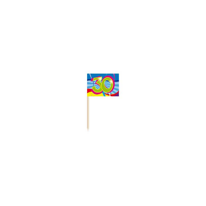 Idée déco anniversaire : Sachet de 50 drapeaux sur pique - 30 ans.