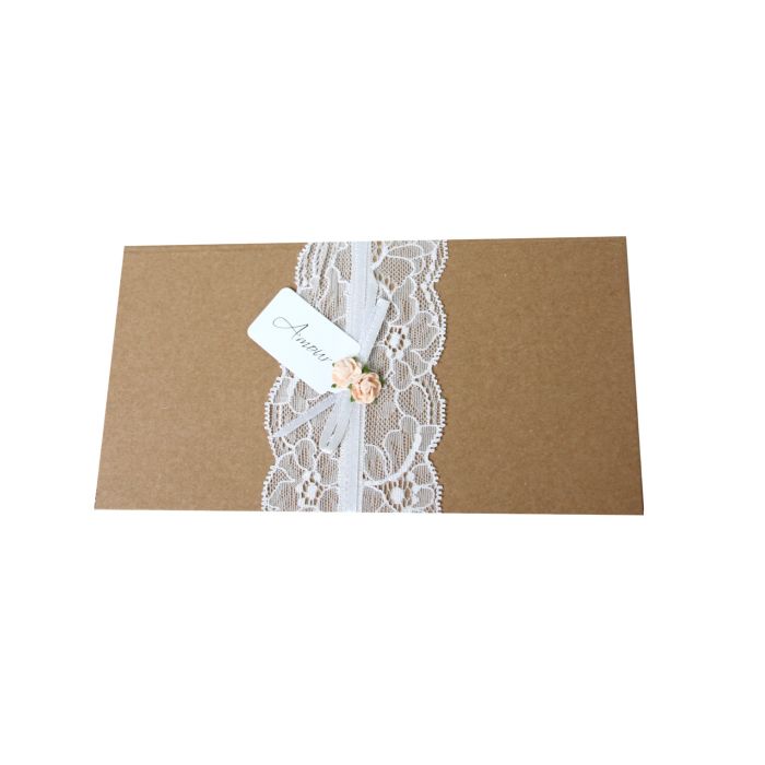 Etui mariage kraft dentelle - 19,5 cm x 10,5 cm