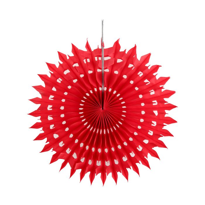 Nous vous proposons cet éventail rouge en papier pour votre décoration de salle. Suspendez cet éventail rouge au dessus de votre buffet anniversaire ou à votre plafond. Le blanc se marie très bien avec le rouge .