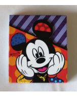 Nous vous proposons cette figurine de collection Mickey assis par l'artiste Romero Britto. Mickey est ici représenté assis sur un socle noir qui porte la signature Romero Britto. La figurine de collection Mickey est peinte dans des couleurs vives et pop.