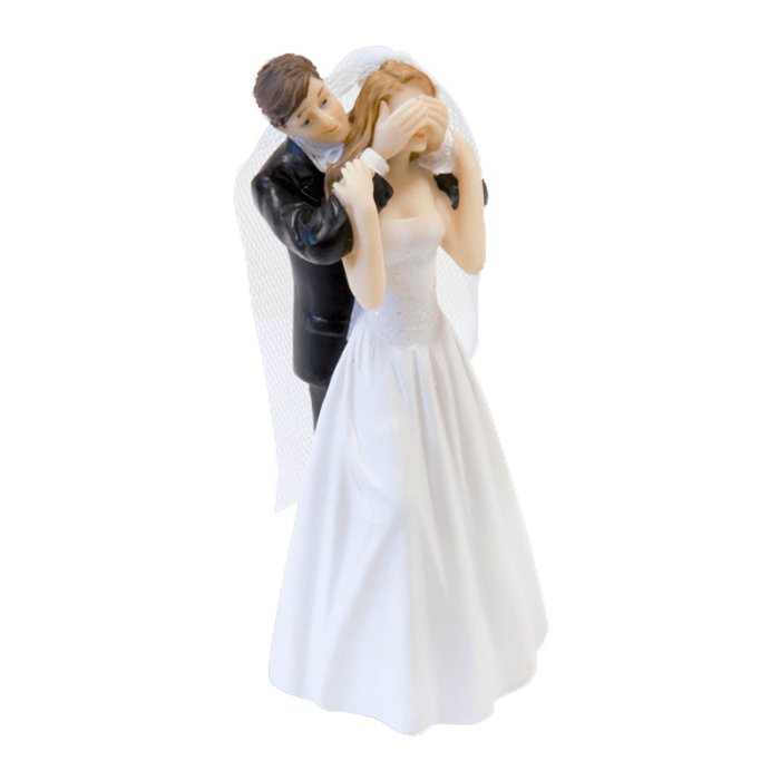 Vous allez bientôt célébrer votre mariage entouré de vos proches ? Pour ce jour si spécial, vous devrez vous occuper de votre décoration de table, de salle, du plan de table, de l'ouverture de bal.. pleins de petits détails qui rendront votre mariage inoubliable auprès de vos convives. Venez découvrir toutes nos décorations qui vous permettront de trouver votre bonheur et rendra ce jour merveilleux. L'arrivée de votre gâteau de mariage doit être marquante, musique, confettis et n'oubliez pas la fameuse figurine de mariage qui sera à disposer sur votre pièce montée. Trouvez la figurine qui vous convient, une figurine romantique, fun ou originale. Découvrez cette figurine de mariage représentant un couple de mariés. La mariée est vêtu d'une longue robe blanche et le marié d'un costume noir. Le marié cache les yeux de sa femme avec ses mains, comme lors d'une surprise.
