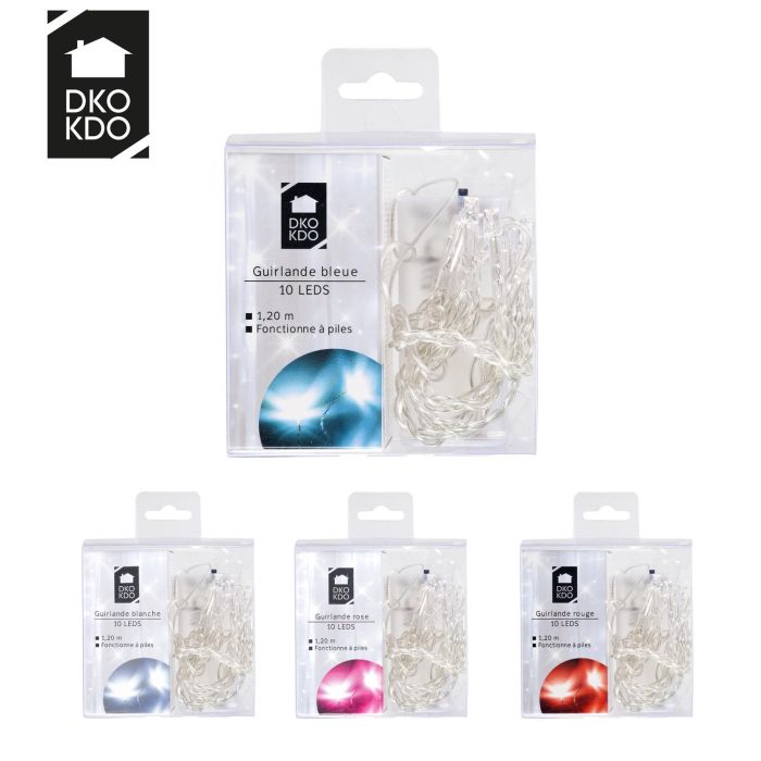 Guirlandes 10 LEDS - 1.20m disponible en bleu, blanc, rose ou rouge selon arrivage.