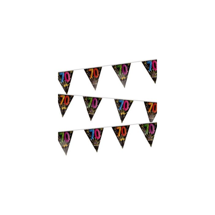 Pour un anniversaire 70 ans absolument inoubliable, misez sur cette magnifique guirlande de fanions 70 ans !