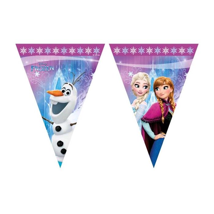Guirlande à fanions - Reine des Neiges à l’effigie d’Elsa et d’Anna et tous les autres personnages du célèbre film ! Votre fille sera aux anges !