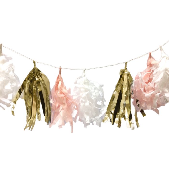 Guirlande tassel franges rose, or, blanc - 2,5 m