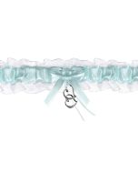 Nous vous proposons, ici, une jarretière en dentelle, couleur blanche. Elle est ornée d'un joli petit ruban en forme de noeud, décoré d'une perle bleue.