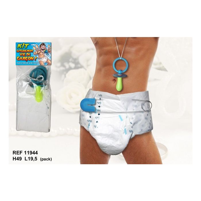 Pour votre enterrement de vie de garçon, n’hésitez pas à en remettre littéralement une couche avec ce kit « Bébé » spécialement façonné pour ce grand moment ! Vous deviendrez rapidement la star incontestée de la soirée, à prix discount !