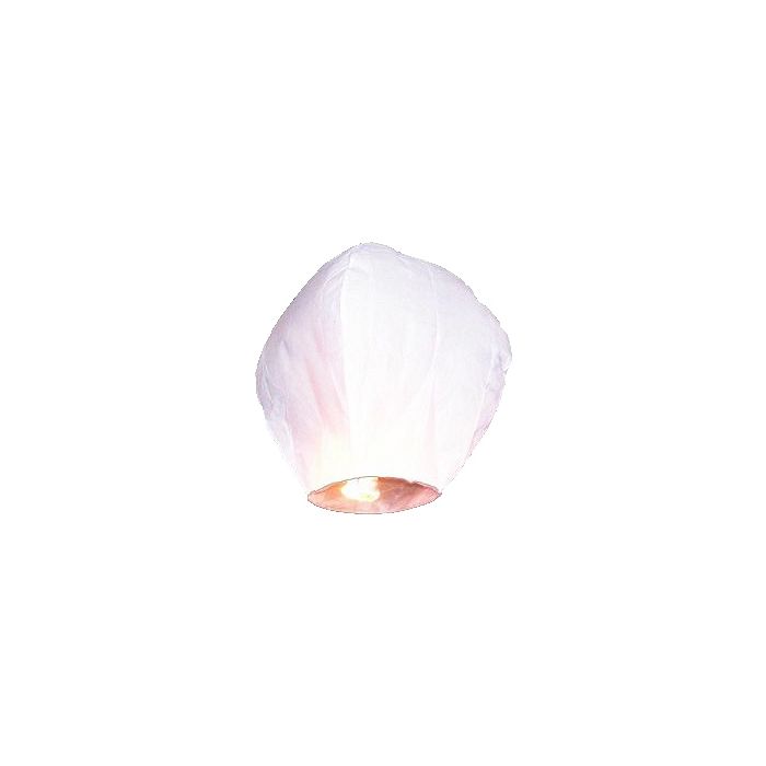 Lanterne volante blanche, de 33 x 48 x 86 cm, en papier. Un must pour finir la soirée en beauté ! Animation de mariage qui n’a pas son pareil !