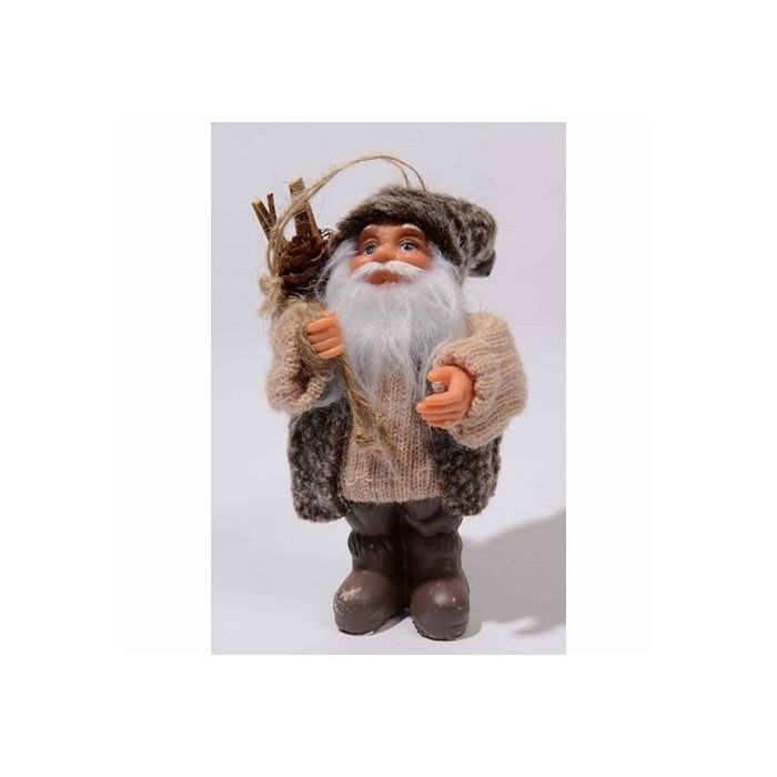 Père Noël brun en peluche, d’une hauteur de 13 centimètres, qui se confondra parfaitement avec le reste de votre déco des fêtes !