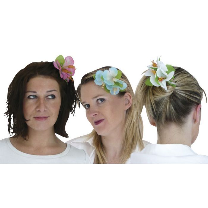 Nous vous proposons ici une pince à cheveux fleur hawaïenne. Il s'agit d'une pince à cheveux crocodile accompagnée d'une fleur d'hibiscus. La pince à cheveux est disponible en plusieurs modèles avec une couleur de fleur différente, rose, bleu ou blanche. Le modèle est livré selon arrivage.