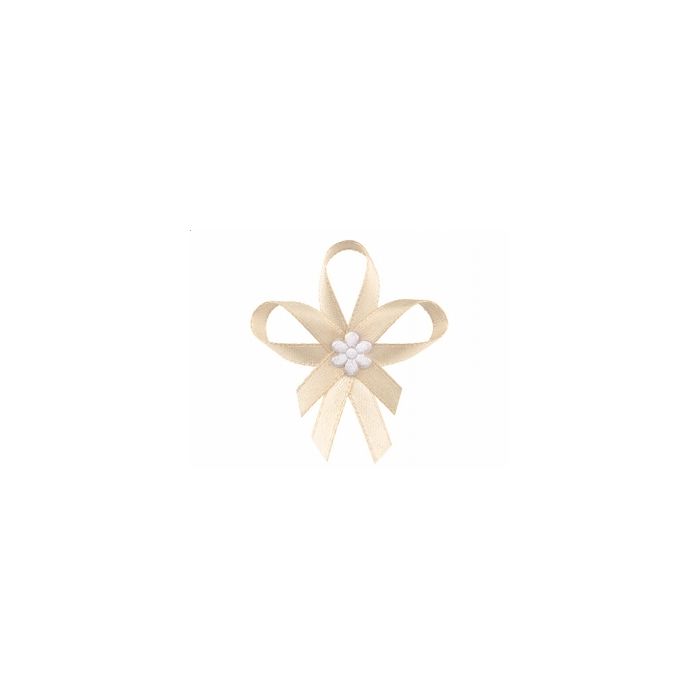 Lot de 25 petits rubans satin, en forme de fleur, couleur : crème.