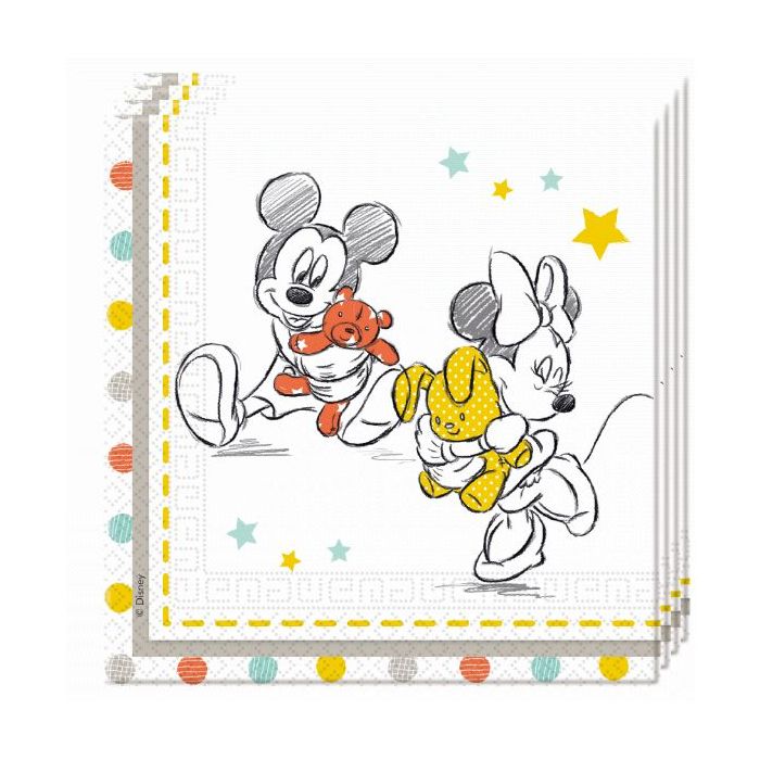 20 serviettes en papier carrées Mickey Baby, de 33 x 33 centimètres et avec deux plis ! De la collection Mickey Baby ! Sur le thème de Mickey et ses amis, les célèbres héros Disney !