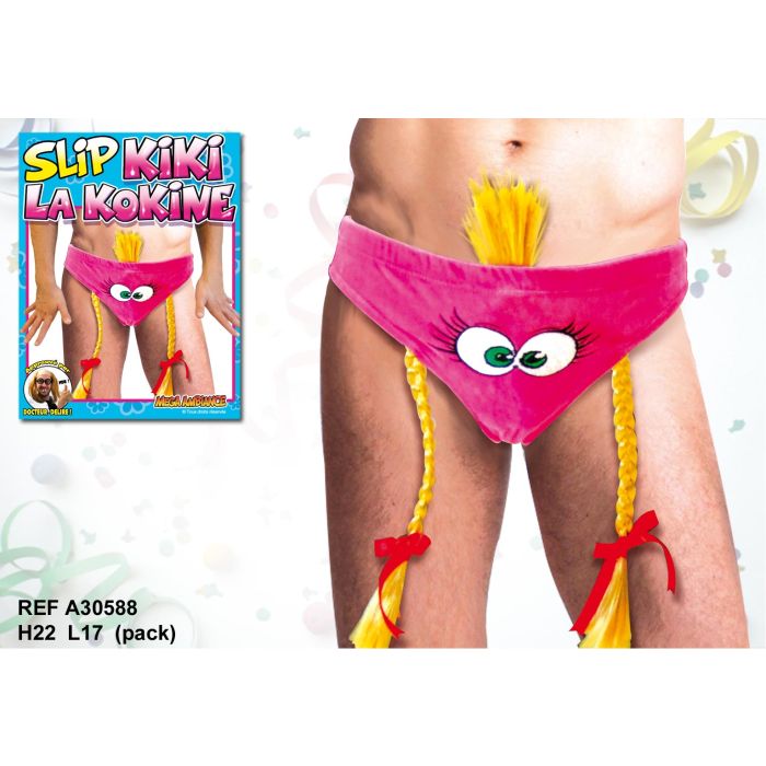 Slip « Kiki la Kokine » en velours, 22 x 17 cm. Idée de cadeau humoristique pour un enterrement de vie de garçon, une soirée déguisée ou un anniversaire.