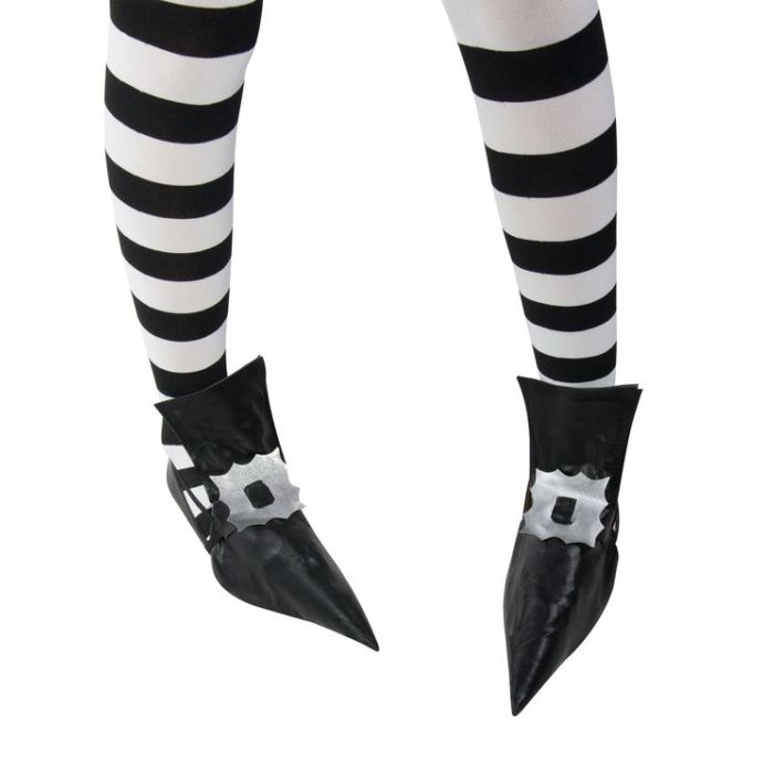 Le soir d'Halloween, pour être crédible dans votre déguisement de sorcière, nous vous proposons cette paire de sur-chaussures de sorcière noire, pointue avec boucle en argent.