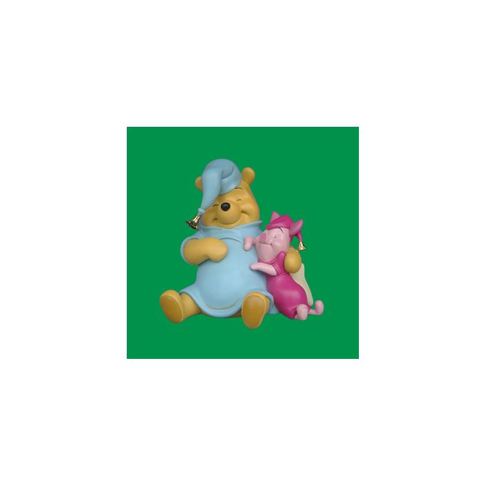 Figurine de collection en résine à leffigie de Winnie lOurson et Porcinet dormant.